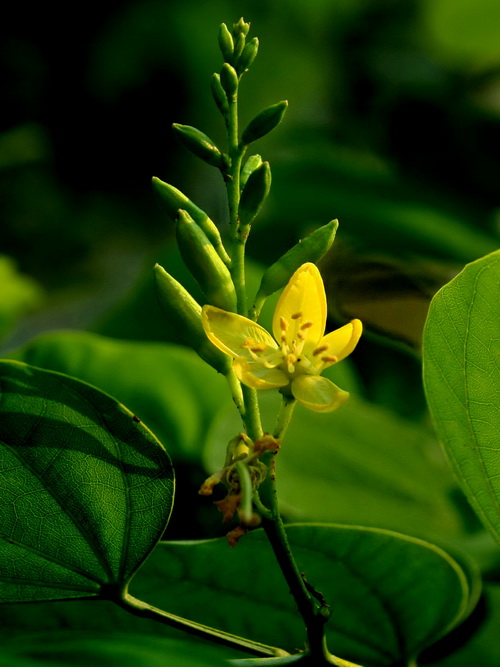 白枝羊蹄甲属多年生直立灌木,高0.5-3m,枝条粉白色,叶近纸质,叶片分裂呈羊蹄状,通常有脉7-9条。总状花序与叶对生,有花数朵至十余朵,花瓣5,黄色,有羽状脉纹。花期3-7月,果期5月至翌年1月。