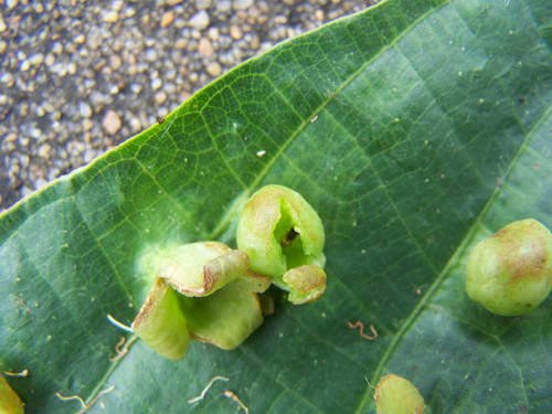 布渣叶叶片上长出类似花芽的虫瘿