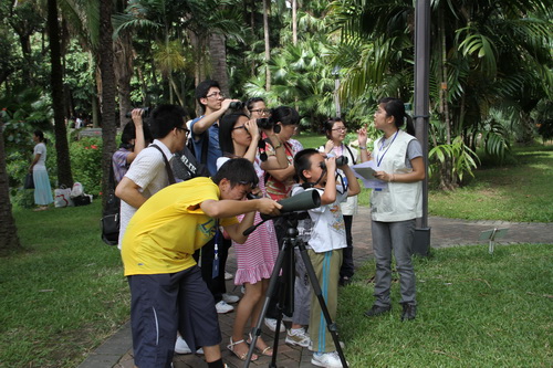 10月1-3日,由华南植物园和施华洛世奇光学公司联合举办的免费观鸟导赏活动顺利拉序幕。本项活动免费提供单双筒望远镜、植物园观鸟折页、观鸟记录表等器材与资料。来自中山大学、华南理大学、华南师范大学、华南农业大学、广东工业大学、广州第二师范学院、华南植物园等院校及科研院所的24名志愿者在180多位报名参选人员中脱颖而出,最终入选成为首批观鸟辅导志愿者,经过严格的培训,在国庆期间开始了首次导赏活动。