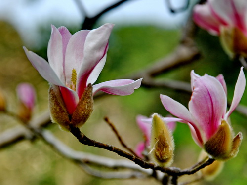 早春二月,乍暖还寒时分,华南植物园木兰园里的各种玉兰花悄然开放了。你看这一树一树白色的玉兰花,雪白亮丽,花香淡洁、雅致飘逸;那边又是满树粉红色的二乔玉兰,姹紫嫣红、绚丽多彩、馥郁清香。还有花开满树的紫红色的红运二乔,吸引来翩翩飞舞的蜂媒蝶使,温馨四溢,满园春色。这些色彩艳丽的花儿正是世界著名的观赏植物——玉兰花。