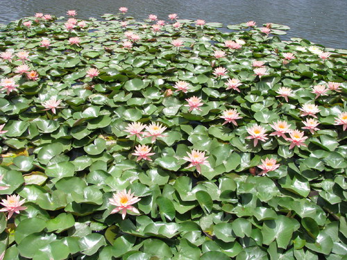 科罗拉多睡莲(Nymphaea ‘Colorado’)是园艺学家培育的优异睡莲品种,花橘粉,花大且开花多。早春二月,水生世界才刚刚苏醒,科洛拉多睡莲就已悄然怒放。一朵朵睡莲花傲立清澈水面,热情洋溢,芳香扑鼻。游客寻春踏青,徜徉花丛间,能感受强烈春天气息。科罗拉多睡莲在华南地区冬天不退冬,花期2—11月,长达10个月,为优秀的园林水景绿化美化大型品种。