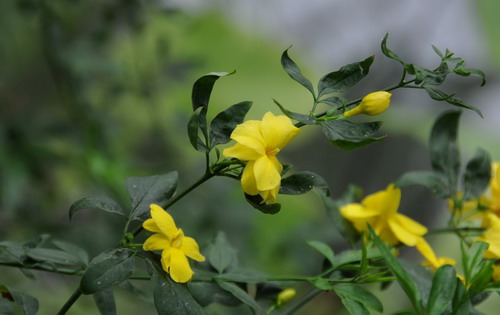 在华南植物园色彩缤纷的花卉海洋里,云南黄素馨很是抢眼。它的枝长而柔弱,下垂或攀爬,常形成一片枝繁叶茂的花墙,鲜艳的黄花藏在碧绿的叶丛中,叶碧花黄,春的气息扑鼻而来,沁入心扉。