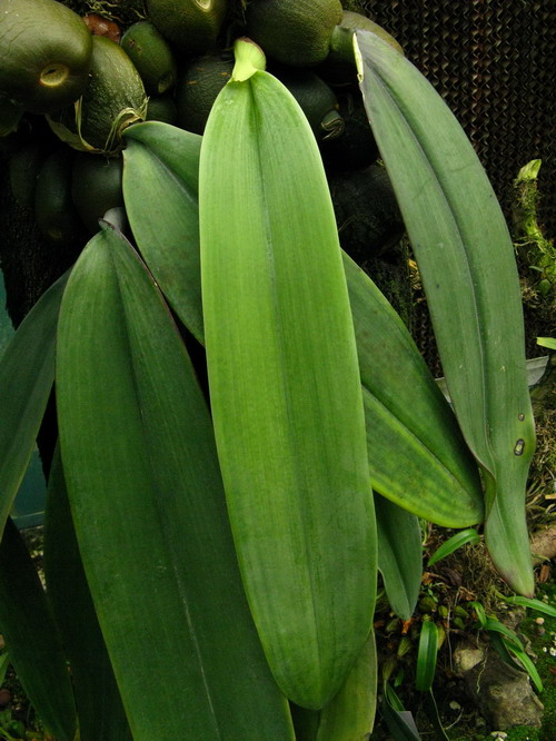 领带兰原产于新几内亚和印度尼西亚,喜欢高温高湿环境,冬季气温不低于15℃、夏季不高于30℃为宜。栽植时常以板植吊挂为主,让长而直的美丽叶片自然下垂,极具绅士风度。