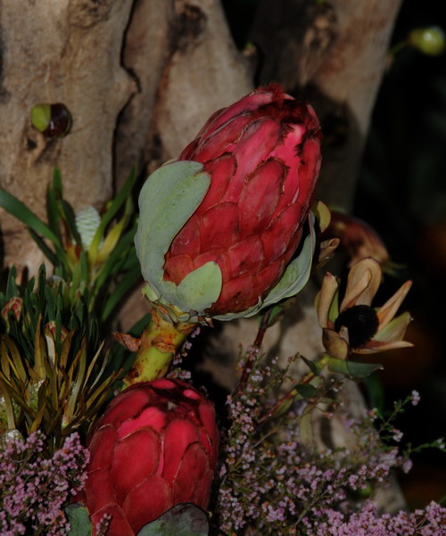 说起帝王花,其实不是我们平常单指的一种花,而是指山龙眼科的一个亚科——普洛蒂亚家族(Protea)植物的统称。这个家族的植物颇为古老和原始,现仅分布在南半球的非洲、南美与澳洲。而帝王花(protea cynaroides),作为南非的国花,是普洛蒂亚家族中分布最广泛的品种之一,可以在海拔0米直至1500米高山上生长。不同的气候条件和地理环境会造就了帝王花树叶、花型、花色以及开花时间的巨大变化。这使得帝王花在作为鲜切花种植时能够适应全世界不同时节的市场需求。