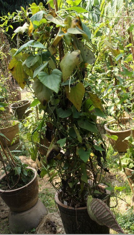 面对大花马兜铃(Aristolochia grandiflora Sw.)那美丽而奇异的花朵时,你会再次感受到大自然的神奇魅力:巨大的花朵仅由一片花瓣构成,花朵基部膨大的花囊,如同鹈鹕鸟嘴下面那个让人一眼就能认出的大皮囊,无怪乎人们又将之称为“鹈鹕花”。其花瓣下部逐渐收缩成一绸带状长尾,似是将囊中所藏之物源源倾泻而出。鹈鹕花花奇色艳,但最好远观而勿近闻,因为它的花朵会释放出一种死老鼠的恶臭气味,让人感到不适。如此奇异的花朵为何会有这般难闻的气味呢?究其原因,在于它奇特的花结构和植物特性:鹈鹕花虽是雌雄同株,但雌蕊先于雄蕊一天成熟,且它奇特的花结构使得雌雄蕊很难与传粉媒介接触,因此,为了吸引昆虫的造访,它释放出这种令人难闻却会吸引诸如蝴蝶之类的昆虫造访的气味,将昆虫吸引进入花囊中,待花枯萎后,再将已沾满花粉的昆虫释放出去,进入另一朵花,将花粉传到柱头上,从而达到授粉的目的。