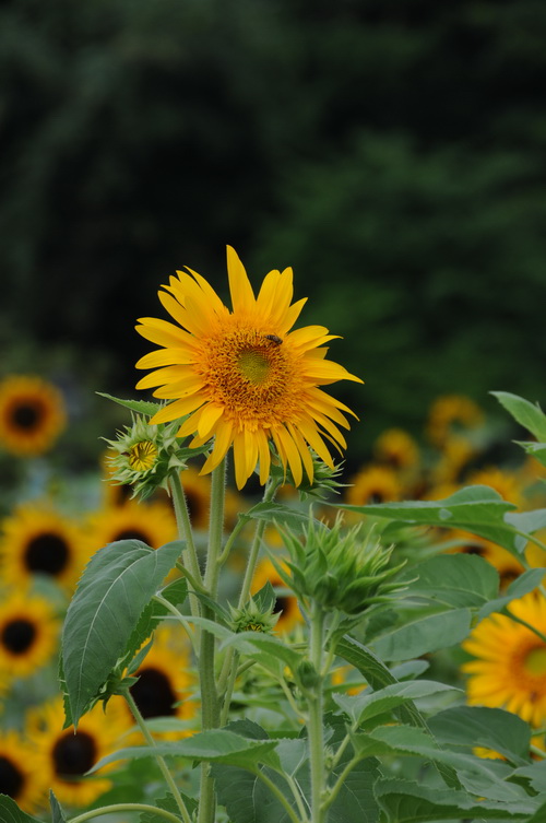 我们常常笼统的说向日葵总是朝着太阳转,这是不准确的,要看向日葵处于什么生长阶段。向日葵从发芽到盛开之前这一段时间,的确是向日的。但是花盘一旦盛开后,向日葵就停止生长,就安定下来了,不再每天辛苦地追太阳,而是固定朝向东方了。