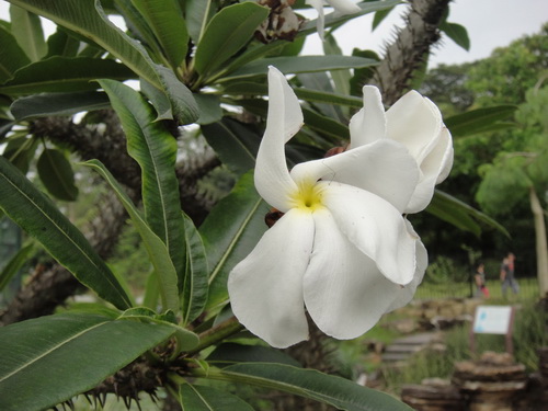 非洲霸王树(Pachypodium lamerei Drake.),是夹竹桃科(Apocynaceae)棒槌树属(Pachypodium)常绿多肉植物,原产非洲马达加斯加岛西南部。非洲霸王树褐绿色圆柱形,茎干肥大挺拔,最高可达6米,远远看起来像一个超大的棒槌,其属名就是由此而来;整个树霸气十足,有种傲视群雄的气势,树身通体密生3枚一簇的硬刺,它的3枚刺都是2枚短,1枚长,看来就像我们中国古代的一种兵器——狼牙棒;茎顶丛生线形叶片,翠绿色,叶柄及叶脉淡绿色;开白色的花,花期较长。