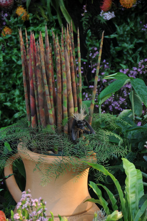 咖啡芦竹(Coflee reed)外形如竹,每年的3-9月,咖啡芦竹的节间会长出细小的枝条,枝条上结出咖啡色的小果。在鲜切花配花市场中,咖啡色果实的配花并不多见,所以被广泛应用。