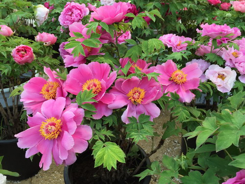 千百年来,牡丹作为友好的使者,促进了中国人民和世界人民之间的友好交往,推动经贸和文化等方面的交流。早在唐代,牡丹就被传播到日本,作为观赏植物和药用植物栽培。明朝中期,牡丹的多数品种姐妹又被引到日本,在品种改良和大力发展之上,培育出许多令人赏心悦目的好品种。根据资料记载,日本现有栽培品种约300个,其中日本自己培育的品种约占2/3。明清时期,牡丹又被传播到欧洲。直至1789年,在异域英国邱园开出了第一枝重瓣粉红色的花朵,无数的人们被牡丹折服,从而在欧洲掀起了一股牡丹热。经过园艺家们的辛勤培育,欧洲品种已经达到110个。到了1820年,牡丹被引到美国,到了20世纪20~30年代,美国的桑德斯教授培育出了花色更丰富的品种,形成了特色鲜明的美国牡丹品种群,并引领了西方牡丹育种和栽培的潮流。