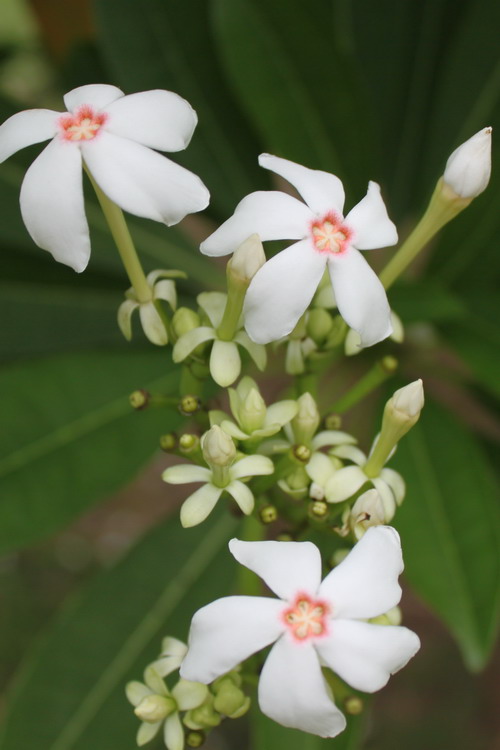 夏日大雨滂沱之后,花儿都垂下了高傲的头,而有一种花不仅没有偃旗息鼓,而在雨后更顽强地绽放,树上开满白花,洁白而芳香,它就是海杧果。因果实像芒果而得名,不过千万不要因长相似芒果而误食,会致死。