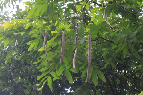腊肠树(Cassia fistula L.),又叫阿勃勒、牛角树、波斯皂荚、金急雨。豆科(Leguminosae)乔木。叶为偶数羽状复叶。花黄色。荚果圆柱形,长30~60cm,成熟时黑褐色,好似一根根挂在树枝上的腊肠,内有种子近100粒。腊肠树分布在印度、缅甸和斯里兰卡。我国南部和西南部各省区有栽培。花期6~7月,果期9~10月。