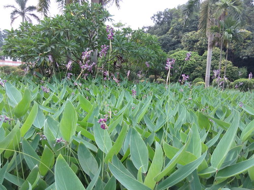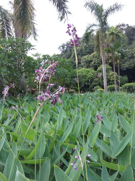 在华南植物园的水生园里,有一种植株高大美观,硕大的叶片形似芭蕉叶,叶色翠绿可爱,花絮高出叶面,亭亭玉立。蓝紫色的花朵素雅别致,一串串倒映在水中,妖娆多姿,恍惚间仿佛置身于江南水乡。它就是有着“水上天堂鸟”美誉的再力花。