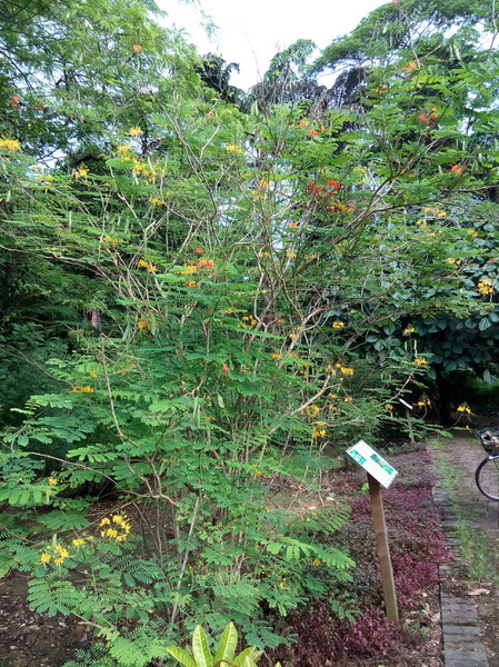 炎炎夏日,艳阳高照,路上行人都把自己武装得严严实实,或打遮阳伞或带遮阳帽。在华南植物园里,绿树成荫,游人三五成群,或亲朋或好友相约在一起,享受这大自然赐予的清凉。在华南植物园的生物园里,洋金凤不惧酷暑花开得正艳,树形轻盈婀娜,优美动人。在阳光地照射下,鲜红色或橙黄色的花儿交相辉映,像火焰般跳跃的自己,在林间完美而尽情地绽放。