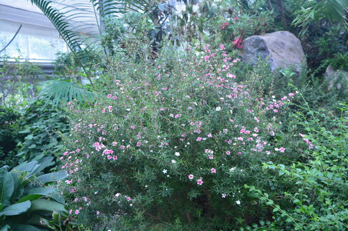 大家看,这种精致的小花布满枝条,在风中摇曳,是不是像夏季的少女们穿着碎花裙子翩翩起舞呢?此花名为松红梅,因其叶似松叶,花似红梅而得名。