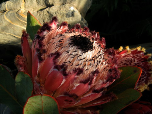 对于帝王花,还有一个非常有趣现象,其有男女之分的,在众多的帝王花丛中,你完全可以从它的外形判断出其是男是女。但凡“帝王”、“公爵”、“王子”等具有雄性称谓的花朵,其苞片则完全打开,花朵扁平,显示了其外向霸气的风格。而“皇后”、“皇妃”“公主”“夫人”等具有雌性称谓的花朵相对修长,苞片通常半闭,并且花心和苞片通常被一些颜色各异的绒毛,就像披上绣有貂皮的外衣,彰显了其含蓄而高贵的品质。