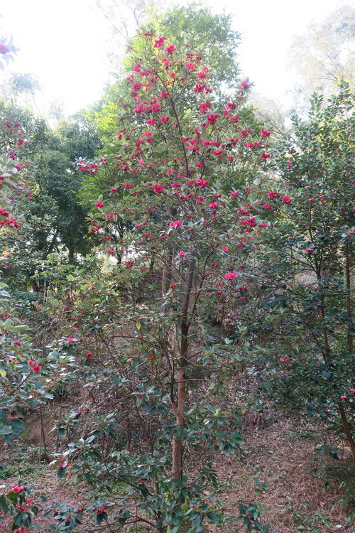 早春三月,万物复苏,大部分春花俨然还没准备好登场的衣裳,而在华南植物园“广州第一村”路边有一种花已悄然盛开,它们羞答答地低垂着脑袋,缀满枝头,花色红艳,它就是红花荷。
