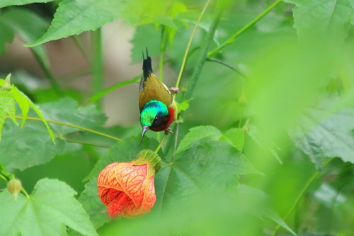 纹瓣悬铃花和叉尾太阳鸟(雄)