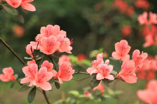 一入正门,就能看到一大片映山红开得格外灿烂,火红的颜色,在满园绿色的衬托下,显得格外鲜艳夺目,过往的游客无不驻足观赏,拍照留影。