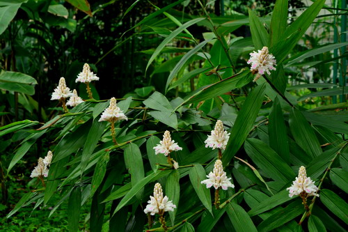 姜科植物花开的声音,唤醒了华南植物园的初夏。姜园内,各种姜目植物轮流苏醒,竞相争艳,这其中,身材相对较小的益智,在各种大气且艳丽多彩的姜目植物中,迎着柔柔的微风,倔强地挺起小身板,高傲地抬起帽子似的花序,为我们展示着它高冷又不失可爱俏皮的风姿。