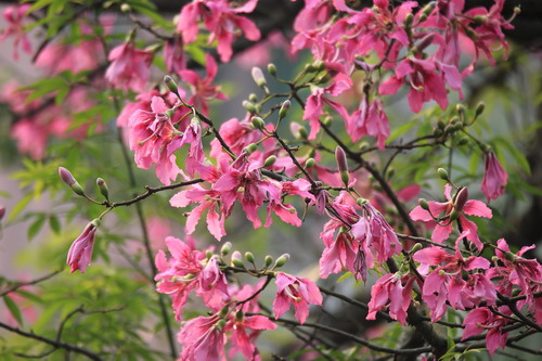 美丽异木棉盛花期满树姹紫嫣红,是优良的观花乔木,也是庭院绿化和美化的高级树种,可用作高级行道树和园林造景,已成为我国南方一种美丽的庭园和行道绿化树木