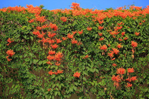 “爆竹一声除旧岁”,春节放鞭炮作为传统习俗,历史悠久,为节日增添了欢乐的气氛。如今,由于燃放烟花爆竹造成环境污染、火灾及人员伤亡等,不少城市都已禁止在公共场所燃放,这一传统习俗也就慢慢淡出人们的视野。虽然不能放鞭炮了,可南方的市民,在春节前后能欣赏到如串串鞭炮一样喜庆的炮仗花。那一串串橙红色的花朵从1月份开始绽放,一直开到4月份,串串即将燃爆的“鞭炮”垂挂枝头,数量极多,非常壮观,为春节带来浓郁的节日喜庆气氛。华南植物园的炮仗花在春节前开始开花,现已进入盛花期。