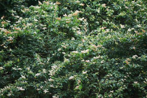 华南植物园中心大草坪旁的科学家雕塑径上,陪伴我国著名植物学家和园艺学家俞德浚先生雕像的是几株小蜡,现它正值盛花期,洋洋洒洒满树白色小花,如雪似霞,静静地守护着俞德浚先生。