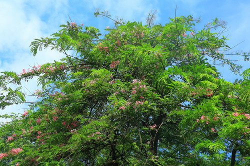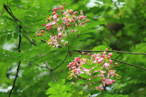 爪洼决明Cassia javanica subsp. nodosa (Roxb.) K. Larsen & S. S. Larsen,豆科腊肠树属半落叶乔木。树冠开展。树皮灰黄褐色,粗糙。羽状复叶有小叶613对。花粉红色,开花时花叶相映,翩翩起舞,极为壮观。原产印度尼西亚、马来西亚、泰国。华南有栽培。花期5-6月。