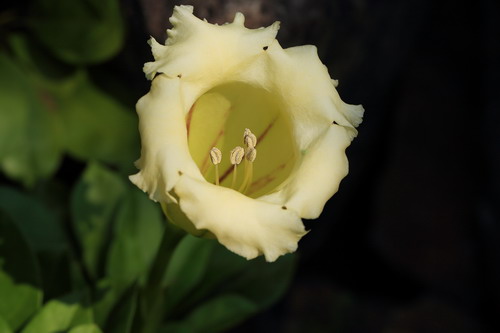 今天的广州清晨,有了点初秋的味道,凉风习习甚是舒爽。到了午后,气温又上升至30度以上,进入炎夏。那么,这秋天的脚步到底离广州还有多远?无论凉爽还是炎热,花儿们始终淡定一如寻常,用怒放来表现自己。如今漫步在沙漠植物室室外小路,有一种高调的大喇叭花正开得欢快热烈,让人无法忽视它的存在,它就是金杯花。