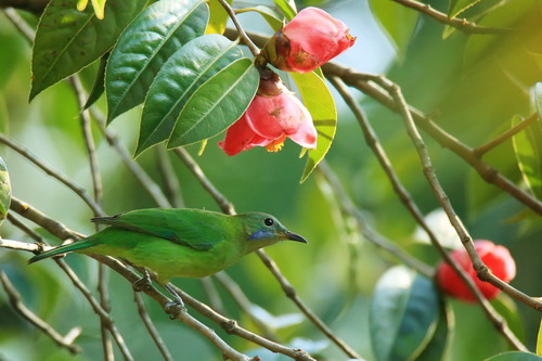近段时间的广州仿如跌入冰窖,那种彻骨的冷是呆在暖气房里的北方孩子无法想象的。在这样的温度下,华南植物园里的很多温带树种均已落叶,只剩光秃秃的树干。而在山茶园里却是另外一幅景象,各种山茶花不畏严寒,竞相绽放,笑傲风霜,给这寒冬带来缤纷色彩。近日,其中有一种茶花成为明星,她满树开满喇叭状花朵,鲜红夺目,似热情奔放的少女,引来四方游客驻足观赏,啧啧称赞,鸟儿们也频频光顾其枝头,因此吸引了大批观鸟爱好者前来“打鸟”,这被围观的就是广宁红花油茶。