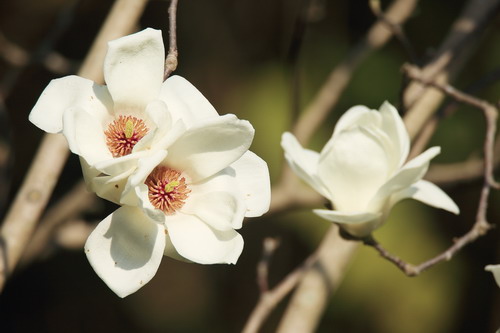 玉兰属(Magnolia)植物是木兰科落叶乔木或灌木,其树形优美,花大艳丽,高贵典雅,芬芳袭人,有紫、深红、桃红、粉红、黄、奶黄、纯白、乳白等众多花色,深受国内外园林爱好者的青睐,作为珍贵的传统观赏花木,在园林应用中经久不衰。玉兰的花先于叶开放,满枝桠含苞待放的花蕾,经一夜暖风吹拂,花儿一下子就张开花瓣,迎接初春的阳光,成为初春最早开放的花儿。现华南植物园木兰园里的白玉兰、二乔玉兰、红运二乔玉兰、星花木兰、望春玉兰、黄山玉兰、鹤山玉兰、阔瓣二乔玉兰、丹馨二乔玉兰和硃砂二乔玉兰等30多个栽培种都在陆续开花。由于各品种的花期有先后,整个玉兰花观赏期可持续一个月左右。