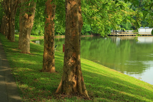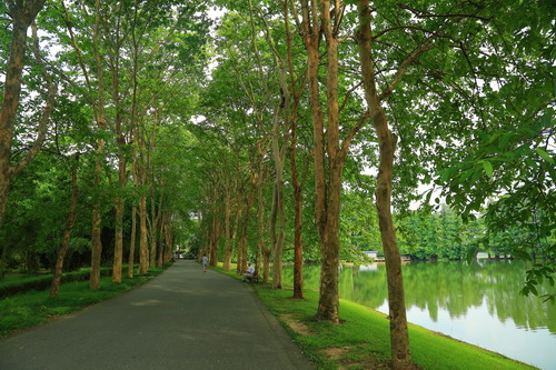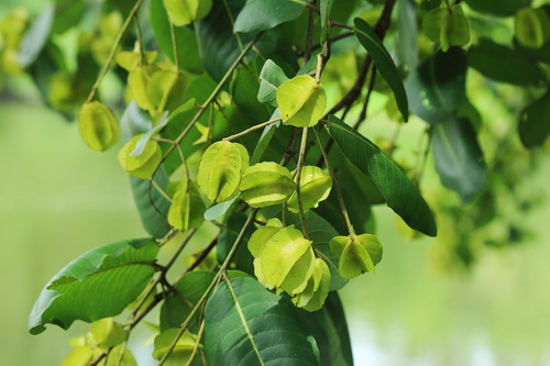 华南植物园内的道路基本上以路两边的行道树来命名,其中有一条路叫“阿江榄仁路”,路两边种植的就是阿江榄仁路。今年,树上的果实结得特别多,如今正是硕果累累挂满枝头。风雨过后,路上也能捡到不少,甚是可爱。