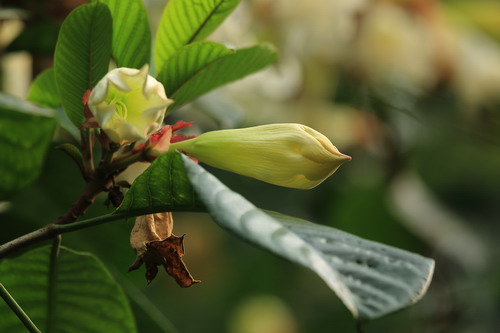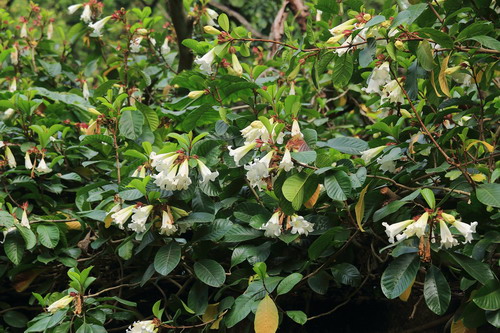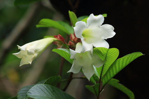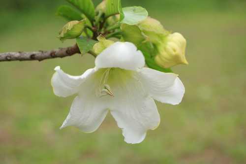 凤梨园的清明花早早的盛放等清明了,清明,清明,天清地明,怎样的花才配得上清明二字。清明花(Beaumontia grandiflora Wall.),夹竹桃科清明花属,叶长圆状倒卵形,嫩枝有锈色毛,叶脉明显,顶生聚伞花序三五成簇,圣洁的白花闪耀枝头,花冠边缘5裂片;雄蕊5枚,着生于花冠筒的喉部。清明花遒劲的木质藤蔓,爬上高高的亭台与林间高大的台湾相思树上,蓬蓬勃勃的向上生长,然后垂下清新柔美的花儿来俯瞰这满园的春色。清明花的根茎坚若磐石,有种顶天立地的“丈夫气”,花儿又非常的素雅,刚柔并济。清明前后盛大绽放的清明花,撷着清香乘着春风捎去对故人的缅怀,是一种应时应景的生命之花。