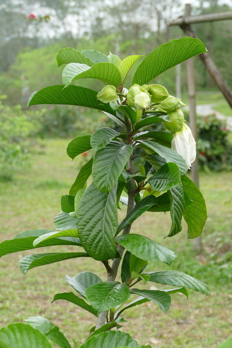 都说它叫大果夹竹桃,可见它的果很大,可是我没见过呀,问过几个长期混迹华植的朋友,居然也没见过。那只有两种可能,一是它不受孕,不结果,二是大家都把它的果忽略了。那我会再留意下才行。植物志说:蓇荚果合生,圆柱形,长达16cm,直径约4cm;种子长圆形,具白绢质毛。