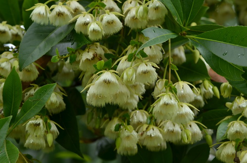 另有一种细叶杜英,为杜英属栽培种,株型稍散乱些,叶片略狭小,花也稍小,但花量更大,一时间,玉英缤纷、乱琼飞舞,蝴蝶、蜜蜂穿梭期间,怎一个美字了得?!