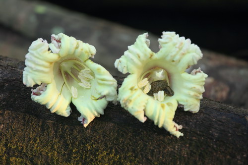 植物不同的生活习性,是自然选择的结果。木蝴蝶的花与猫尾木、吊瓜树的花,不管从形态上还是从习性上,都有种“似曾相识”的感觉。它们都来自满是奇花异果的紫葳科,皆为花冠筒内紫红色,在清幽的夜晚怒放,在黎明破晓之际戛然坠落。它们的美丽源自辽阔的星空、深邃的黑夜。