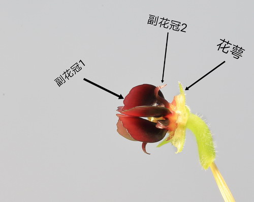 说是花,怎么没看到雌蕊雄蕊?原来它们的雄蕊和雌蕊粘合生成中心柱,称合蕊柱,花粉结合包在一层柔韧的薄膜内,成块状,称花粉块,花粉块和副花冠特征这是萝藦科植物的特征之一。
