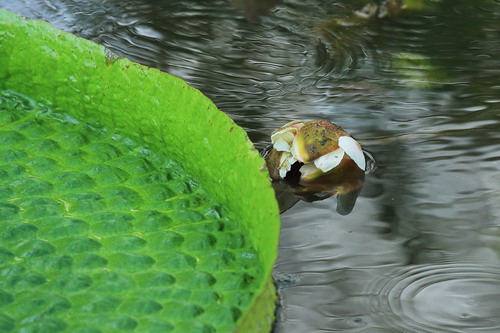 今年6月中,我们移栽了3株克鲁兹王莲(品种)到木本花卉区池塘中,到7月中,她们开始开花了。所以,现在大家不用去热带雨林室,在室外也能观赏到善变女神——王莲了。