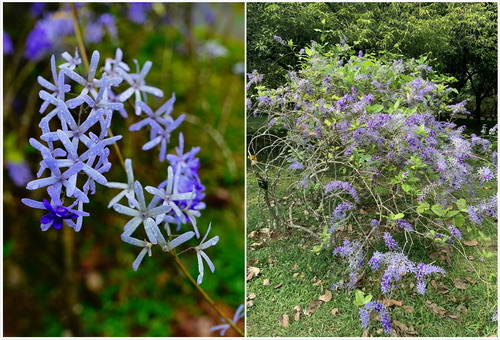 华南植物园藤本园和中心大草坪附近园林树木区的蓝花藤今年(2020年)已是二次开花,其第一次开花是在3月底,花期持续了十几天。这种短期内二次开花的现象实属少见,着实让人惊讶。