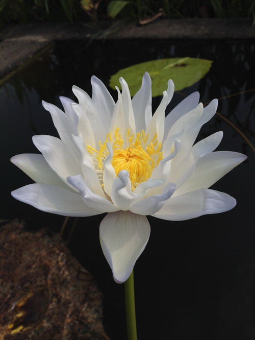 黑水鸡在清晨或傍晚没人的时候会来到池塘左边的方块区域行走,寻找食物。这里是以睡莲为主的水生植物种植池,面积不大,但种类各具特色和具有较高的观赏价值,每当开花时节竞相开放,有洁白无瑕的澳洲巨花睡莲(Nymphaea gigantea),红黄色的著名睡莲万维莎(Nymphaea ' Wanvisa '),粉粉萌萌的香睡莲(Nymphaea odorata),婷婷玉立的泽泻慈姑(Sagittaria lancifolia),小巧玲珑的萍蓬草(Nuphar pumila),婀娜多姿的垂花水竹芋(Thalia geniculata)以及绚丽的路易斯安娜鸢尾(Louisiana Irises)等等。不管经历了多少风风雨雨和寒暑,黑水鸡能在这里留下来并作为长期的栖息地,想必是这里的环境美观、安全宜居的原故,“闲来湖畔清幽处,红喙细梳黑羽裳”。