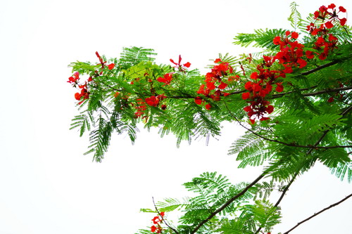 凤凰木的树形很美,或高或低,树冠开展,枝叶茂密张开呈伞形,冠幅可达八米以上。
