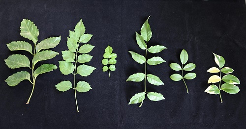 奇数羽状复叶,从左至右:凌霄、厚萼凌霄、硬骨凌霄、非洲凌霄、粉花凌霄、斑叶粉花凌霄