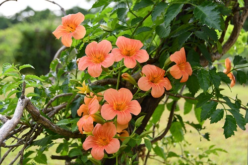 翠叶橙花的凌霄