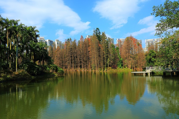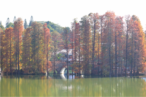 隆冬时节,在广东的很多水边,落羽杉站成了一道美丽的风景线。据记载,广东省的落羽杉最早由华南植物园创始人、著名植物分类学家陈焕镛教授于1928—1929年间,从美国加利佛尼亚大学交换种子而来。科学家的贡献总是在若干年后,仍然无声无息的润泽着人们。