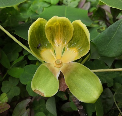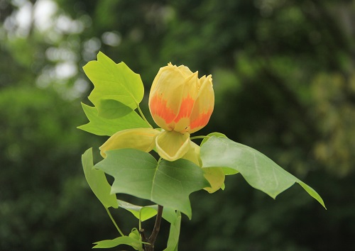每当鹅掌楸换上别出心裁的新马褂之际,枝头上也随之绽放出酒杯状的绿色花朵,模样酷似郁金香,害得人们误以为郁金香上树了,于是外国人惊呼她为“Chinese Tulip Tree”,即中国的郁金香树