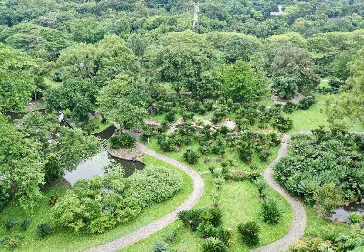 只见历经千年风霜的越南篦齿苏铁树干如盘虬卧龙,苍劲有力,婆娑的树形刻满岁月的痕迹,修长舒展的大型羽叶青翠光亮,恰如凤凰之羽毛。这6株正在开花的越南篦齿苏铁镇守在苏铁园的入口之外,显得威武而又庄严。