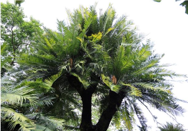 ▲镇守苏铁园入口的越南篦齿苏铁(宁敏华摄)