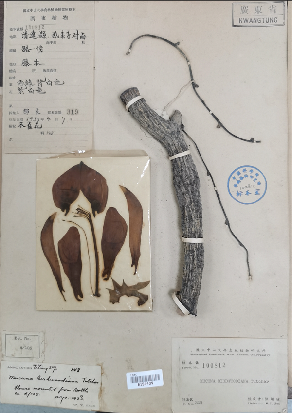 1937年的白花油麻藤标本(华南植物园标本馆供图)