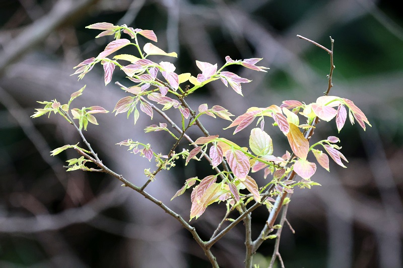 “不知细叶谁裁出,二月春风似剪刀。”春天的新叶是春风剪裁出来的,嫩绿、粉红、棕红,一切都是新的。