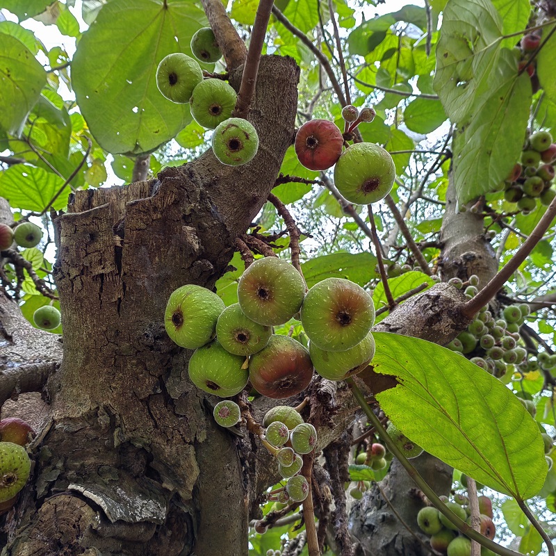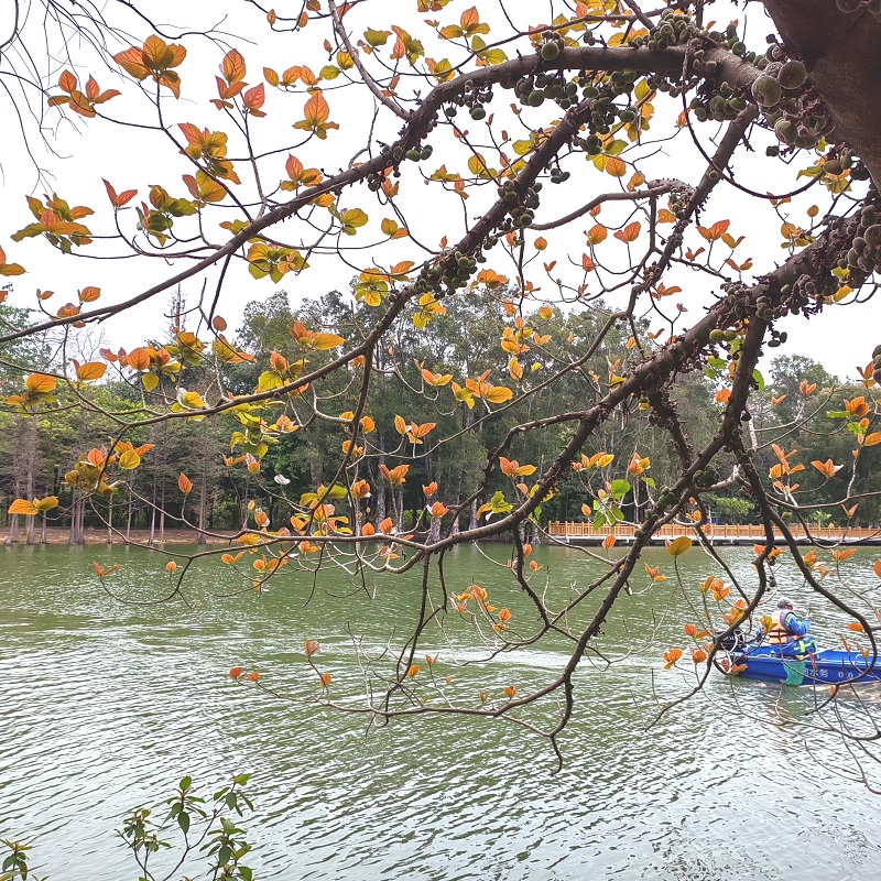 植物新长出的嫩叶叶绿素少,花青素多,往往呈红色。生物园的大果榕郁郁葱葱,一如既往;水生园的大果榕则刚换上“新装”,叶子棕红,榕果簇生于树干基部和老茎短枝上,水生园的大果榕肉眼可见的对湖的“偏爱”。(观赏地:生物园、水生园)