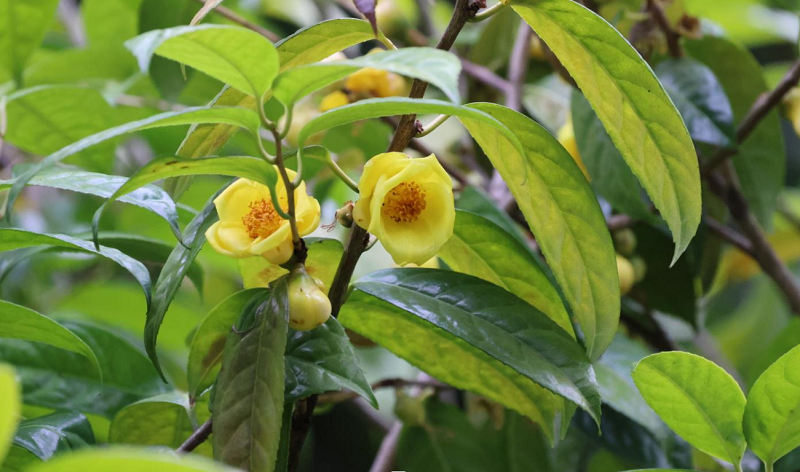 金花茶是山茶花家族唯一具金黄色花瓣的种类,被尊称为“茶族皇后”,国家二级保护植物。(观赏地:山茶园)